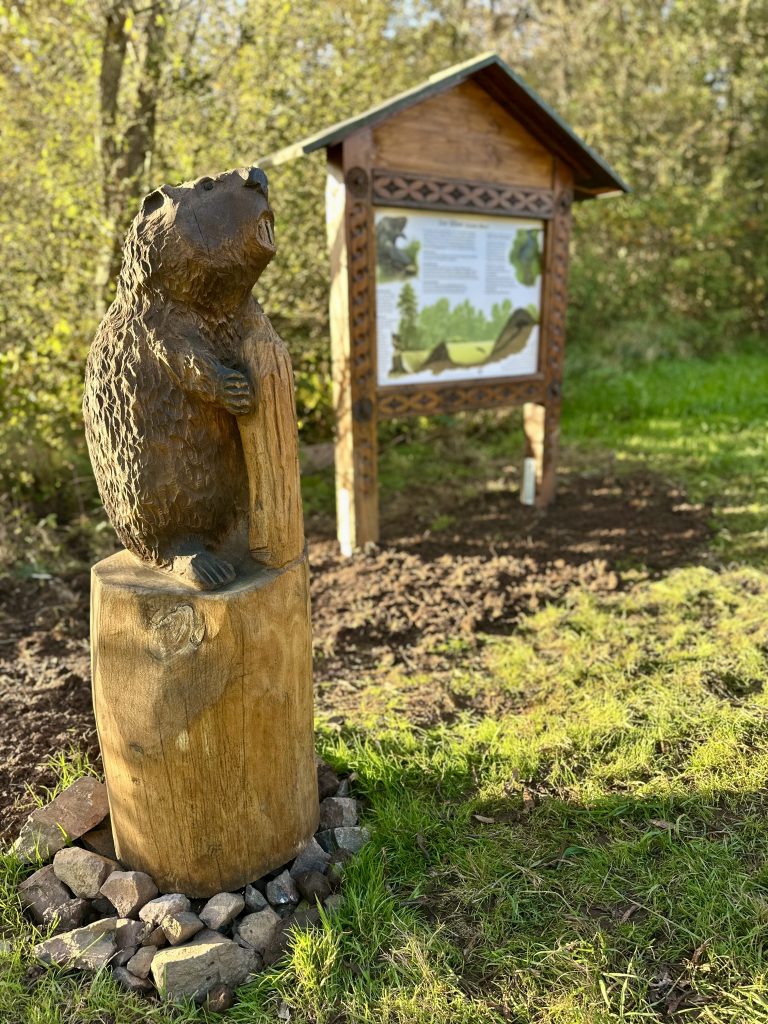 • Biberfigur: Die aus Holz geschnitzte Biberfigur ist ein Highlight für Besucher jeden Alters. Sie wurde mit viel Liebe zum Detail gestaltet und zieht die Aufmerksamkeit der Wanderer auf sich.