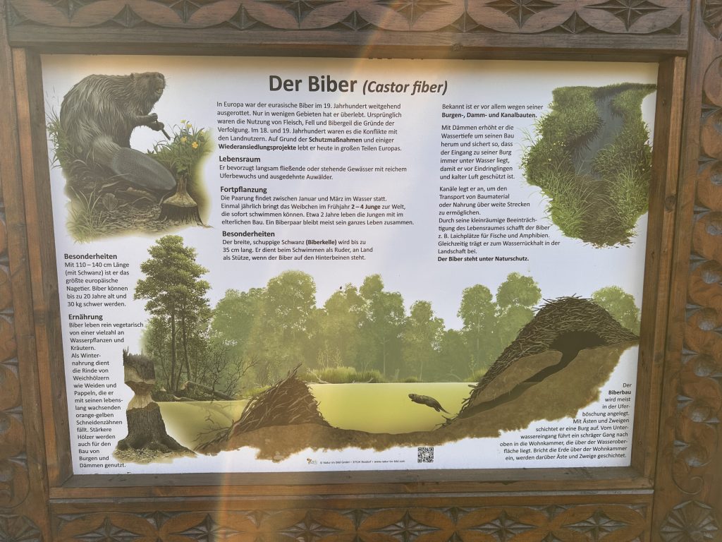 • Biber-Infotafel: Diese Tafel informiert Wanderer über das Leben der Biber und deren Bedeutung für das Ökosystem. Sie ergänzt die bereits vorhandenen kindgerechten Natur-Schautafeln und bietet wertvolle Informationen für alle Altersgruppen.